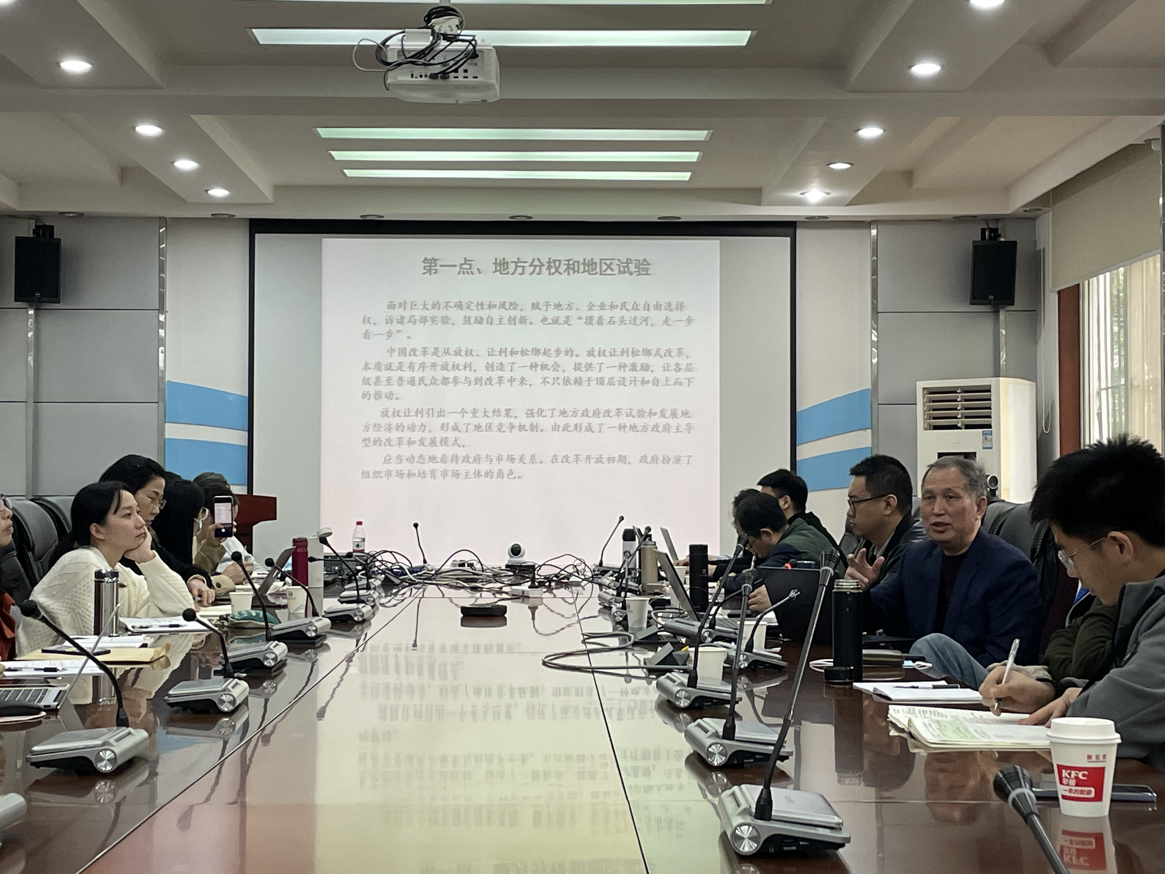 10月22日上午,著名当代史研究著名专家、华东师范大学中国当代史研究中心兼职研究员、中国经济体制改革研究会特约研究员萧冬连教授,做客必赢国际官网“马克思主义与当代中国论坛”,在学院M218会议室作了题为“中国渐进式改及其经验”的学术讲座。讲座由437ccm·必赢国际宋俭教授主持,来自华中科技大学、华中师范大学和本校437ccm·必赢国际、历史学院相关专业的教师及硕博士研究生参加。